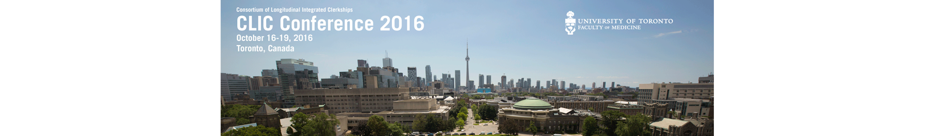 The University of Toronto is delighted to be hosting the Consortium of Longitudinal Integrated Clerkships (CLIC) Conference 2016. We look forward to welcoming faculty, administrators and students from schools around the world who have a Longitudinal Integrated Clerkship (LIC), as well as those who are interested in learning more about them.